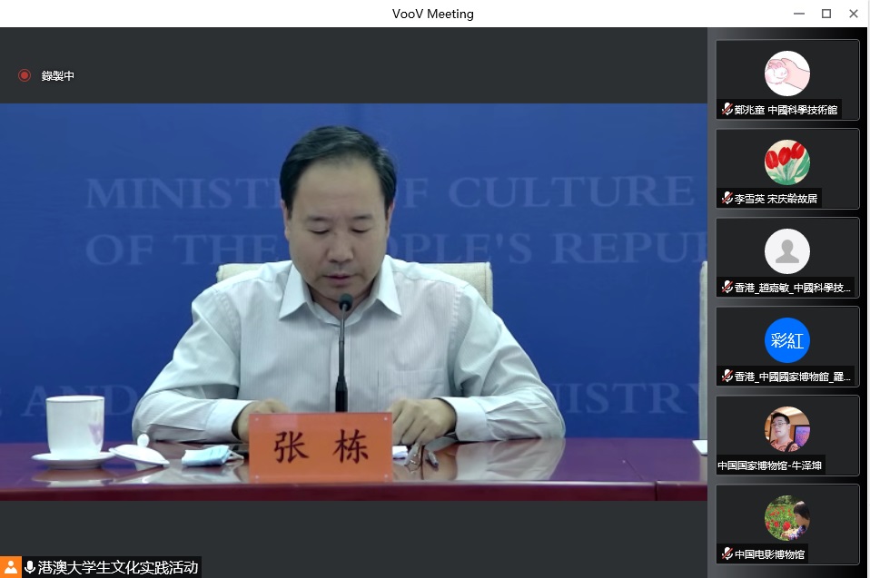 由文化和旅遊部港澳台辦公室、全國青年聯合會秘書處、香港中聯辦青年工作部、澳門中聯辦教育與青年工作部、香港青年聯會以及澳門基金會共同主辦的2022年“港澳大學生文化實踐活動”於8月26日下午舉行線上閉幕式。文化和旅遊部港澳台辦二級巡視員張棟、辦公室處長李文沛、澳門中聯辦教育與青年工作部副處長馬曉偉、香港中聯辦青工部青年處處長王鳳鈺、澳門基金會主席吳志良、香港青年聯會主席楊政龍、中國美術館院長吳為山及各承辦單位和相關實習機構代表共同參與。