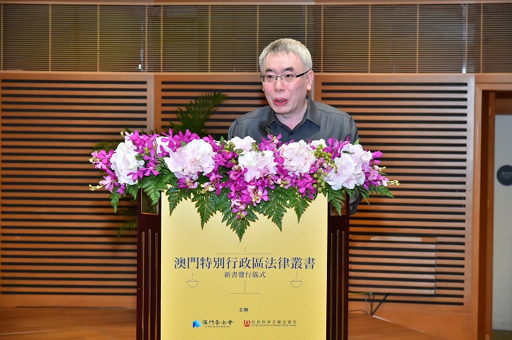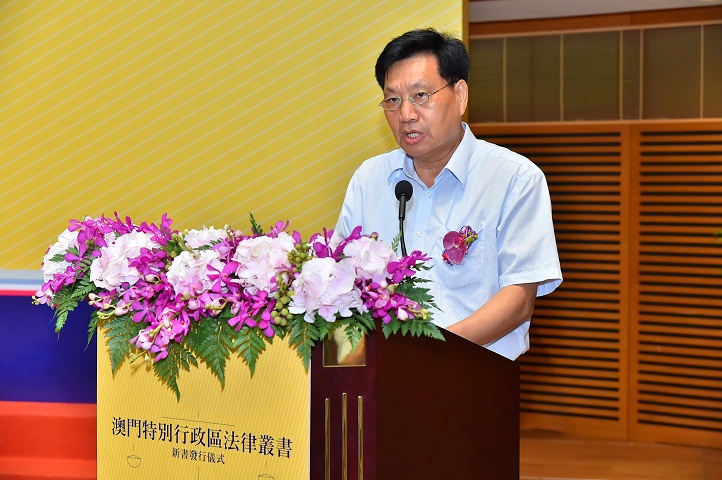 O Professor Liu Gaolong, em representação da Comissão Editorial da presente Colecção, no seu discurso, abordou as quatro características principais desta Colecção que são: os autores são todos especialistas locais do Direito, trabalham há muitos anos em Macau; os livros já publicados desta colecção têm, em geral, um elevado grau profissional e académico; durante a fase da escrita, muitos dos autores tem os livros e os materiais jurídicos em português e em outras línguas estrangeiras como referência, fazendo uso dos conceitos jurídicos na língua portuguesa que são aplicáveis em Macau; deste modo, torna-se possível fazer uma reflexão suficientemente profunda sobre o novo desenvolvimento do Direito da RAEM ligando-o estreitamente à realidade da sociedade de Macau. Em resumo, frisou que “nunca foi visto na História de Macau, uma Colecção com uma grandeza desta dimensão, uma tão grande abrangência e profundidade de conteúdos associados a uma profissionalização de elevado nível de qualidade e conhecimento dos autores, como se verifica na presente Colecção, o que constitui um enorme tributo à sociedade de Macau”.