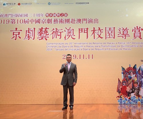 Realizaram-se, respectivamente, às 14h e 17h do dia 11 de Novembro na Escola Hou Kong e Instituto Politécnico de Macau as sessões de ópera de Pequim em escolas. O reitor da Escola de Ópera de Jilin Ni Maocai e o presidente da direcção da Fundação da Ópera de Pequim da China Zhang Jianguo fizeram os respectivos discursos para divulgar este tipo de arte aos alunos, tendo estes, sido convidados a participarem nos espectáculos.
